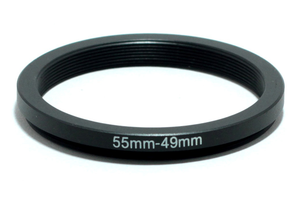 Supondo que o diâmetro do seu filtro seja 49mm e você tenha duas lentes: uma com diâmetro de 49mm e outra de 55mm. Como a primeira lente e o filtro tem o mesmo diâmetro, 49mm, eles se encaixam perfeitamente. Porém o filtro de 49mm não vai encaixar na lente de 55mm. Para conseguir encaixar, usamos então um anel redutor de 55mm para 49mm.