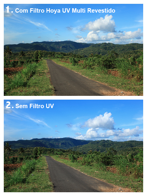 Em teoria, o filtro UV bloqueia os comprimentos de onda ultravioleta, melhorando a fidelidade de cores do nosso espectro visível. Seu efeito foi bastante útil na fotografia analógica de filme, deixando as cores muito mais fiéis, uma vez que o filme fotográfico é bastante sensível as interferências causadas pelos raios ultravioletas.