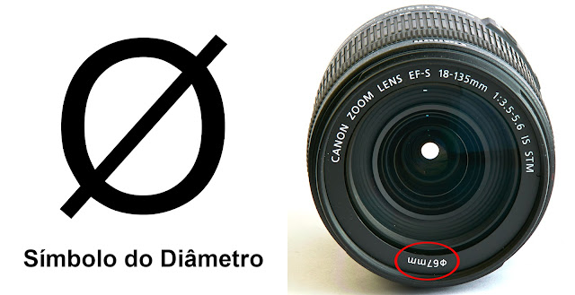 Vamos começar pelos filtros. Antes de falar sobre eles, é importante ter em mente o diâmetro da lente em questão, onde ele vai ser rosqueado. Para encontrar o diâmetro da sua lente, procure pelo símbolo do diâmetro em sua parte frontal, seguido de um número em milímetros.